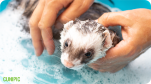 Los hurones necesitan cuidados higiénicos regularmente. Como mínimo, una vez al mes, pero preferiblemente semanalmente, se le tienen que limpiar los oídos, cortar las uñas