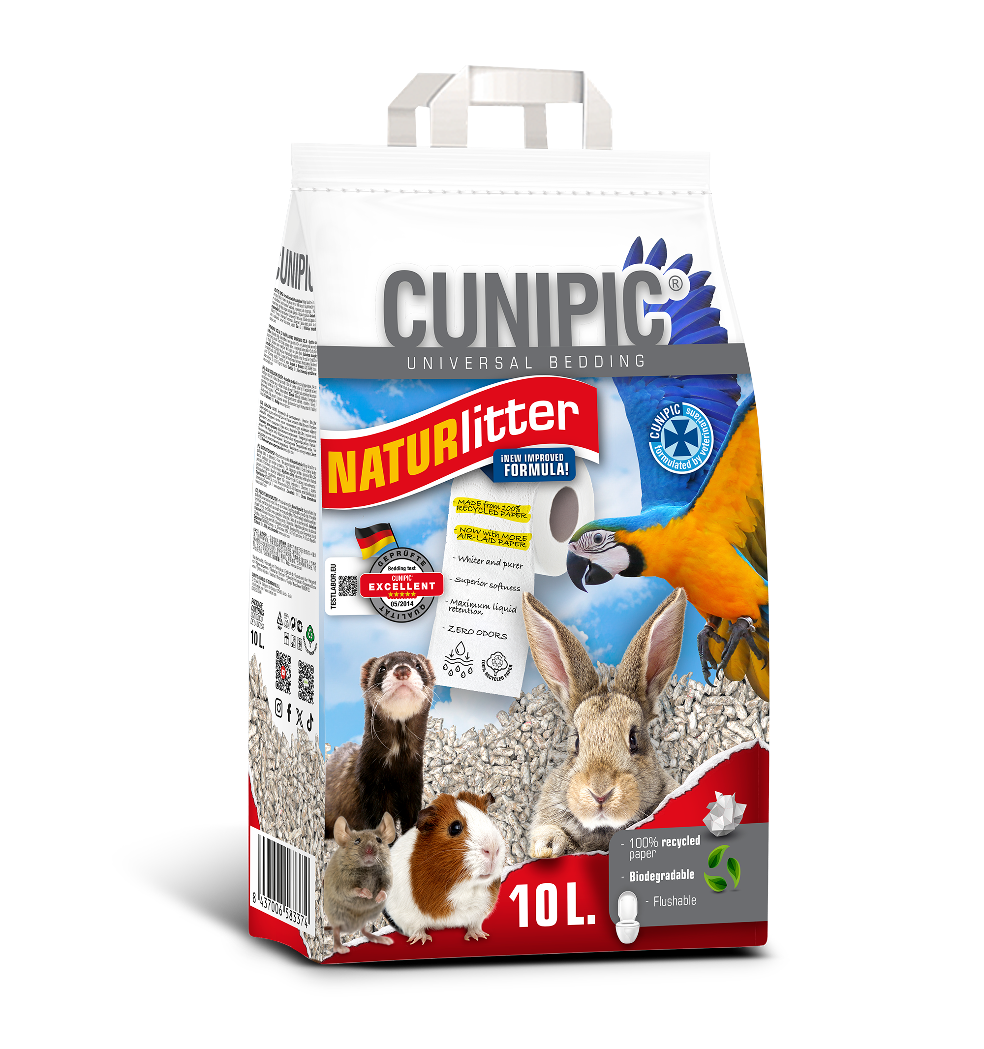 Naturlitter de papel es un producto ecológico y biodegradable, que puede ser empleado como compostaje. Es un sustrato muy limpio e higiénico, con elevada capacidad de absorción y neutralizador de olores. Su composición libre de polvo previene problemas de alergia y respiratorios en los animales más sensibles. Las inmejorables características de este producto hacen que no tenga competencia en el mercado y por ello es el producto más recomendado por los veterinarios. Con Naturlitter Papel Cunipic te aseguraras de la máxima absorción.